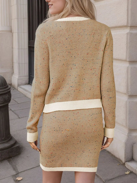 Contrast Trim Ribbed Top and Skirt Sweater Set