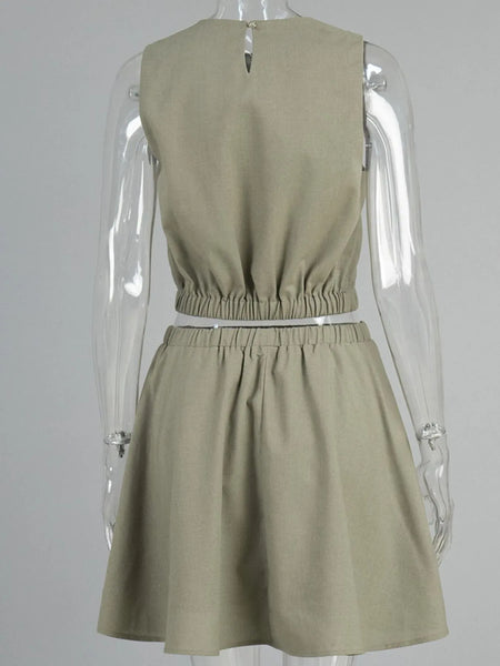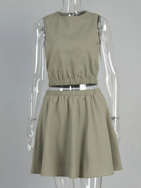 Round Neck Sleeveless Top and Skirt Set