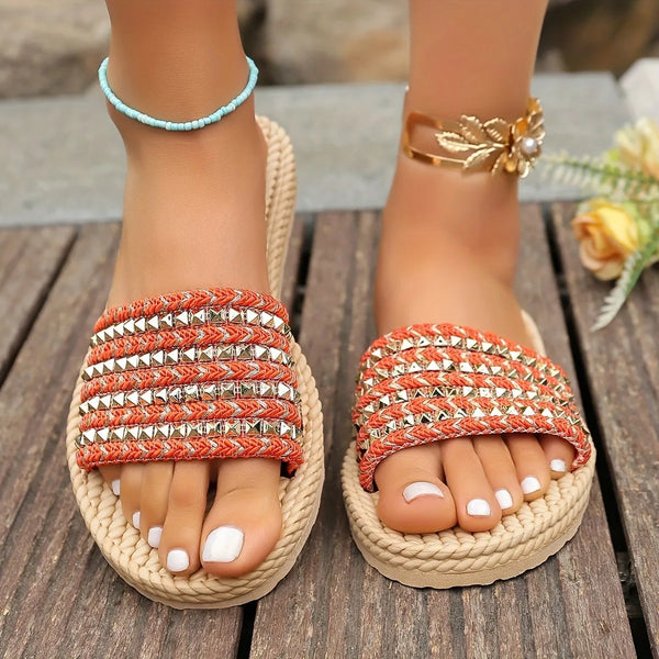 Studded Open Toe Flats Sandals