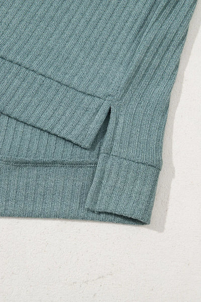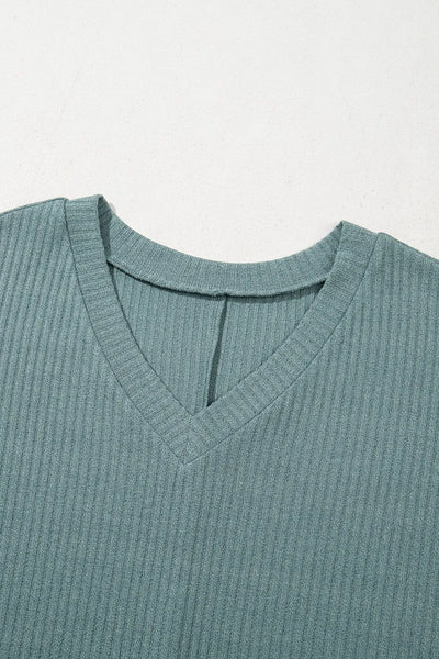 Oversized Ribbed Knit V Neck Dolman Short Sleeve Top