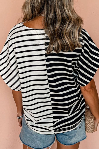 Stripe Two Tone Colorblock V-Neck T-Shirt