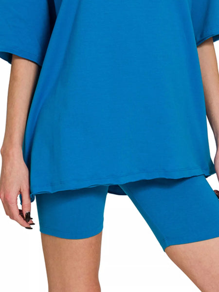 The Cotton V-neck Top & Biker Shorts Set is a trendy and comfortable ensemble perfect for casual wear. The V-neck top offers a flattering neckline and the biker shorts provide a stylish and sporty look. Made from cotton, this set ensures a soft and breathable feel against the skin. Perfect for lounging or running errands, this coordinated set offers effortless and chic styling. Elevate your casual wardrobe with this versatile and on-trend cotton V-neck top and biker shorts set.