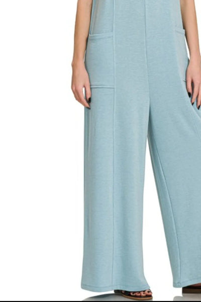 A French terry deep V neck jumpsuit is a stylish and comfortable garment made from soft and cozy fabric. It features a flattering deep V neckline and is perfect for casual or loungewear. This versatile jumpsuit can be dressed up or down for various occasions.