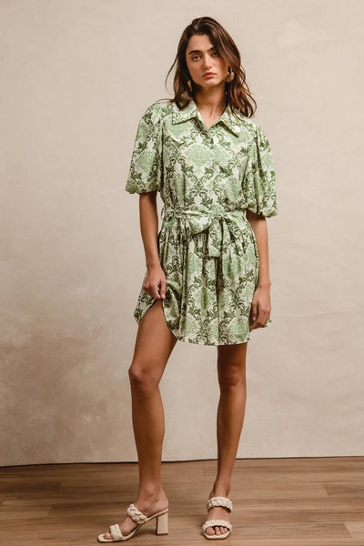 BiBi Tied Floral Short Sleeve Mini Shirt Dress