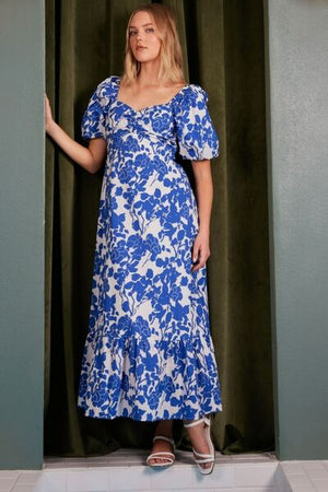 Mittoshop Cutout Back Floral Sweetheart Neck Puff Sleeve Dress