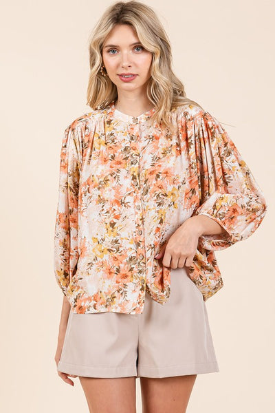 This stylish blouse features a lovely flower print design on soft fabric. The batwing sleeves add a touch of elegance, while the button-down front creates a classic look. Perfect for a casual day out or a relaxed evening, this blouse will make a versatile addition to your wardrobe. The flowy silhouette offers a comfortable and flattering fit for all body types. Pair it with jeans for a chic and effortless outfit, or dress it up with a skirt for a more polished look. Stand out in style with this beautiful and trendy blouse!