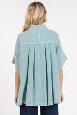 The Mineral Wash Gauze Oversized Short Sleeve Shirt is a must-have piece for those seeking comfort and style. Crafted from gauzy fabric with a mineral wash finish, this shirt exudes a relaxed and casual vibe. The oversized fit adds a modern and trendy touch, perfect for effortless, laid-back outfits. The short sleeves provide a breathable and airy feel, making it ideal for warmer days. Pair this shirt with your favorite denim or leggings for a chic and comfortable look. Elevate your casual wardrobe with the Mineral Wash Gauze Oversized Short Sleeve Shirt as a versatile and on-trend staple.