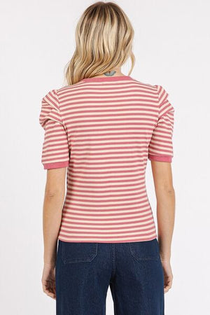 Mittoshop Striped Round Neck Puff Sleeve T-Shirt
