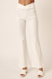 The Surplice V-Waist Flare Pants are a trendy and flattering choice for a chic and stylish outfit. With a surplice V-waist design, these pants create a flattering silhouette that accentuates the waist. The flare leg style adds a touch of flair and sophistication, making them perfect for both casual and dressier occasions. Pair these pants with a tucked-in blouse or a cropped top to highlight the unique waist detail and elongate the legs for a fashion-forward look.