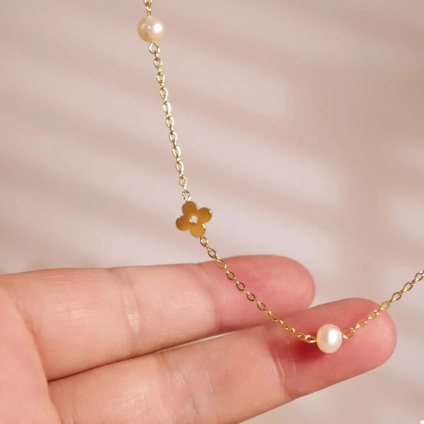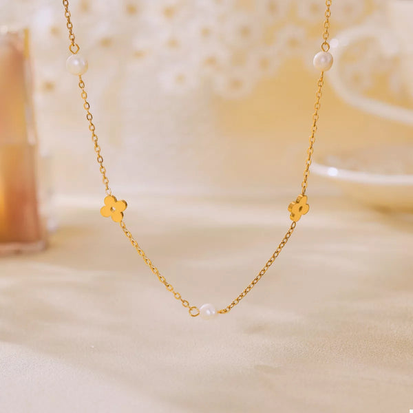Freshwater Pearl 18K Gold-Plated Flower Necklace