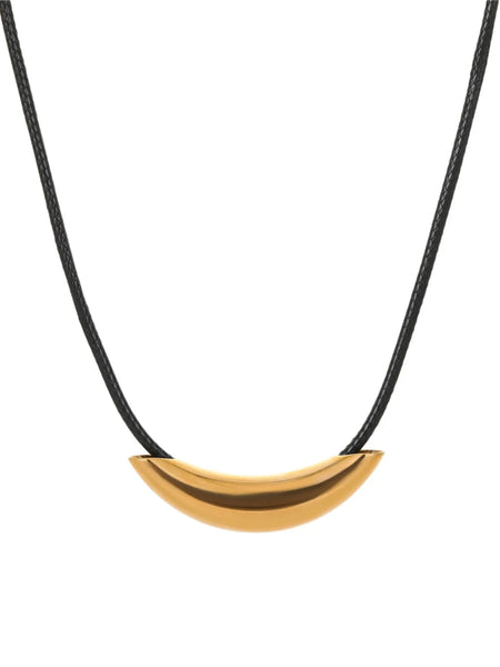 Stainless Steel Curved Bar Necklace with Leather Rope