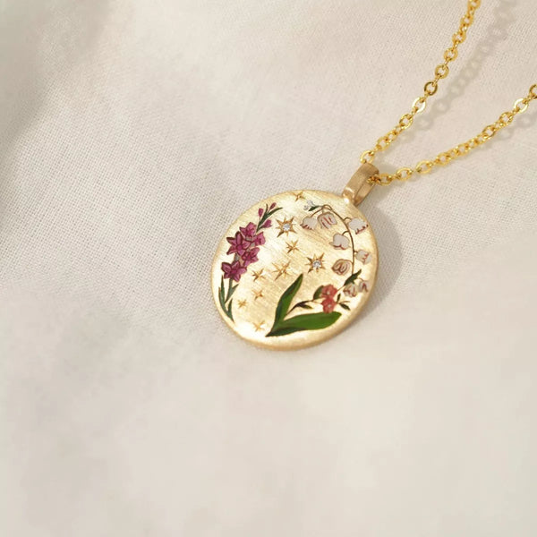 Titanium Steel Painted Oil Dripping Floral Oval Tarot Necklace