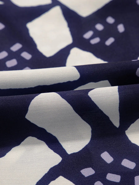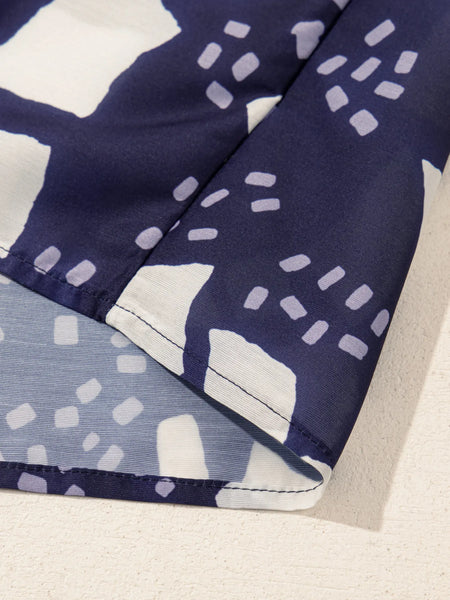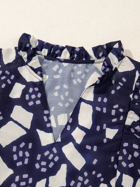 Abstract Print Frilled Puff Sleeve V Neck Blouse