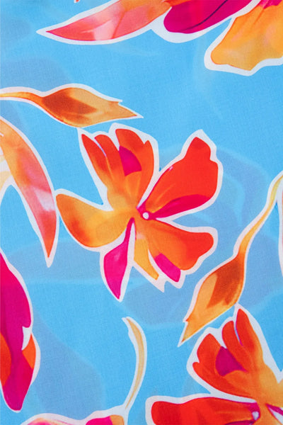 Floral Print Notched Pompom Trim Flutter Sleeve Blouse