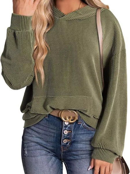 Ribbed Oversized Hoodie Sweatshirt with Pocket
