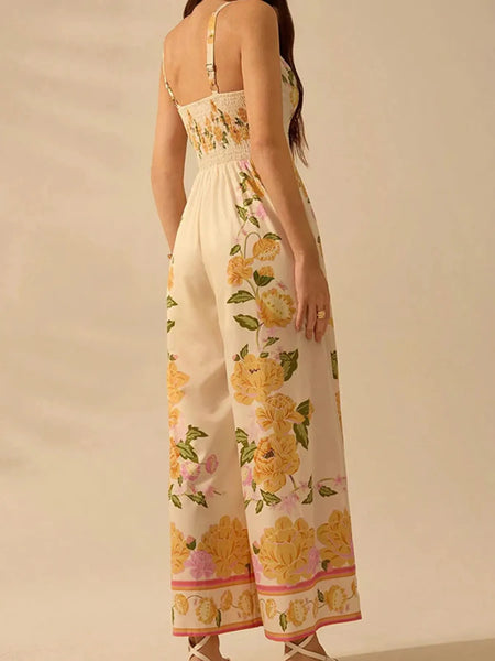 Floral Print Wide-Leg V-Neck Cami Jumpsuit