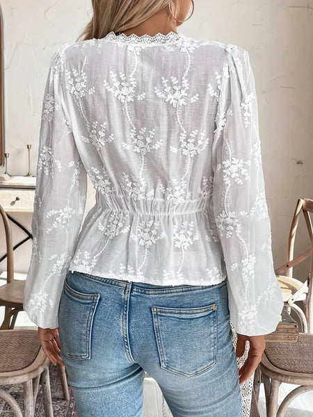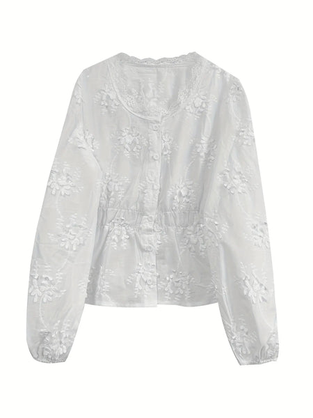 Elevate your everyday look with a dash of romantic charm, courtesy of this enchanting lace-trimmed button-up shirt.