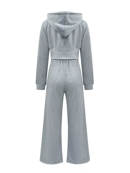 Casual Cropped Hoodie and Wide Leg Pants Set