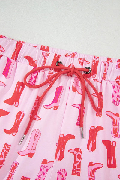 Cowgirl Boots Printed Shirt and Shorts Set