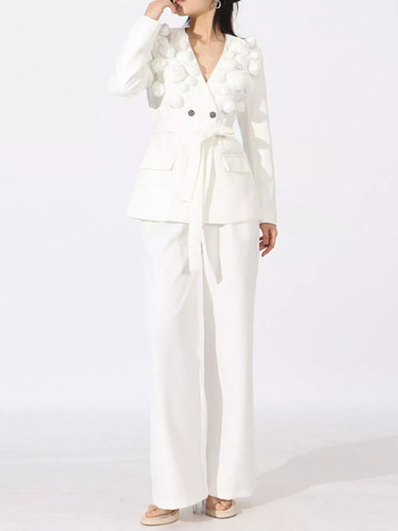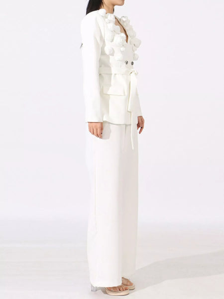 Flower Long Sleeve Blazer and Pants Set