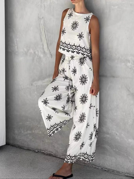 Printed Tank and Wide Leg Pants Set