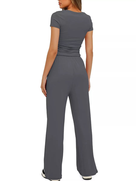 Round Neck Short Sleeve T-Shirt and Pants Set