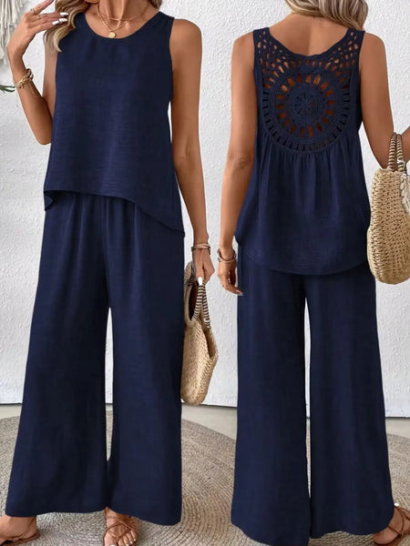 Round Neck Tank and Wide Leg Pants Set