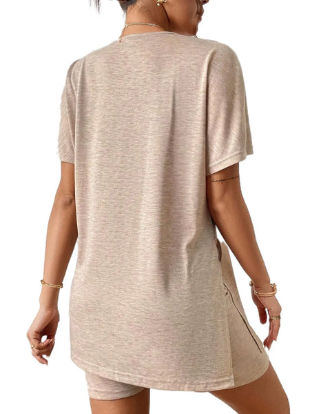Slit Round Neck Short Sleeve Oversized Top and Shorts Set