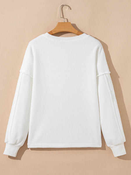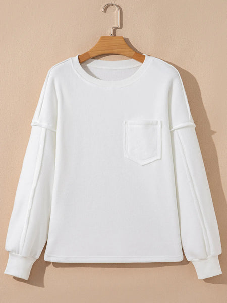 Exposed Seam Chest Pocket Knit Pullover Sweatshirt