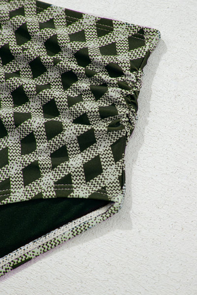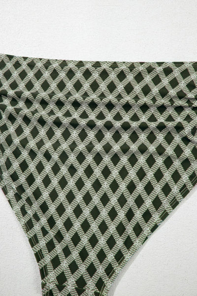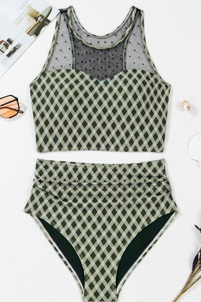 Dotted Mesh Plaid Patchwork High Waisted Swim Set