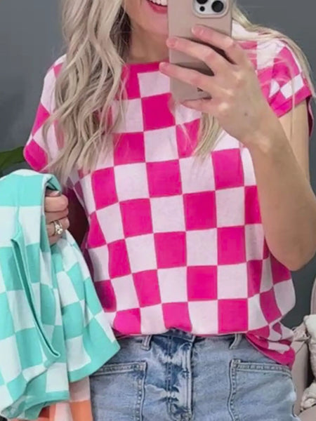 Checkered Cap Sleeve Casual Sweater Top