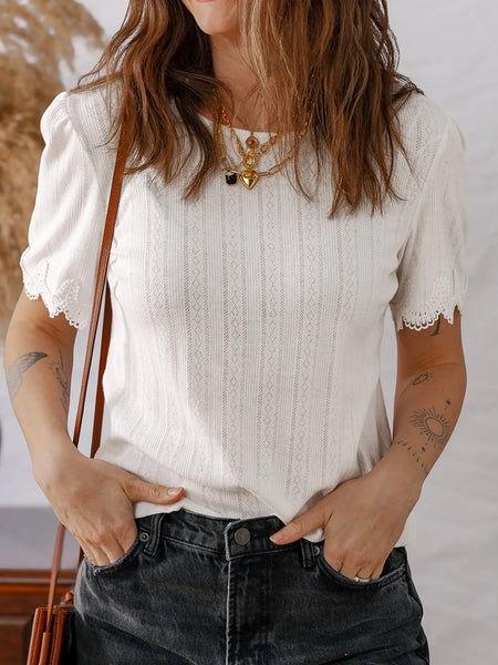 Scalloped Lace Trim Jacquard Textured T Shirt