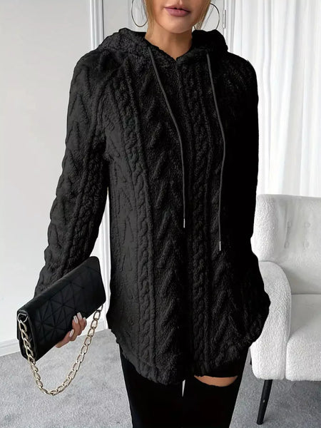 Soft, textured, and perfectly cozy, this drawstring fleece hoodie is your go-to for relaxed comfort with a chic, modern twist.