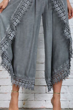 Slip into sophistication with our show-stopping wide leg pants, featuring intricate lace details that add a touch of whimsy to any outfit.