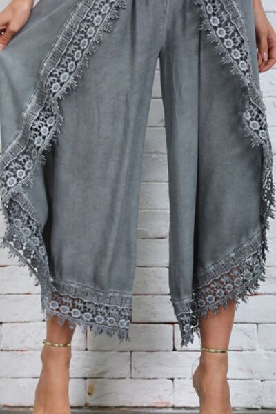 Full Size Lace Detail Wide Leg Pants