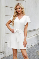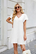 Tied Button Up Short Sleeve Mini Shirt Dress