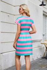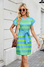 Tied Contrast Striped Short Sleeve Mini Tee Dress