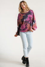 Umgee Full Size Tie Dye Round Neck Long Balloon Sleeve Top