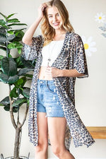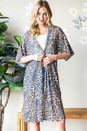 A leopard open front cardigan is a stylish and versatile piece of clothing that features a leopard print pattern and an open front design. It can be worn casually with jeans and a t-shirt for a trendy look, or dressed up with a blouse and pants for a more polished ensemble. This cardigan is perfect for adding a pop of pattern and texture to your outfit while staying cozy and comfortable.