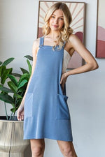 A ribbed sleeveless mini tank dress is a sleek and versatile wardrobe essential perfect for warm weather or layering. The ribbed texture adds a touch of visual interest to the dress, while the sleeveless design is ideal for staying cool and comfortable. This dress can be styled with sneakers and a denim jacket for a casual look or dressed up with heels and statement jewelry for a chic ensemble suitable for various occasions.