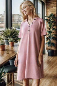 The Solid Ribbed Mini Dress with Button detailing is a chic and versatile option for any occasion. The ribbed texture adds a touch of sophistication to the dress, while the button accents create a stylish focal point. This mini dress is perfect for both casual outings and dressier events, offering a classic and trendy look that can be easily dressed up or down.
