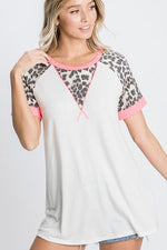 HeimishFull Size Leopard Round Neck Short Sleeve T-Shirt with Stitch