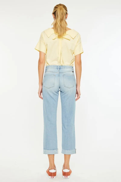 These mid-rise distressed boyfriend jeans are the perfect combination of casual and stylish. With the relaxed fit and trendy distressing, they make a great addition to any wardrobe. Pair them with a basic tee for a laid-back look, or dress them up with heels for a more polished ensemble. Either way, you'll be sure to turn heads in these versatile and comfortable jeans.