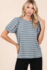 Mittoshop Contrast Striped Short Puff Sleeve Knit Top