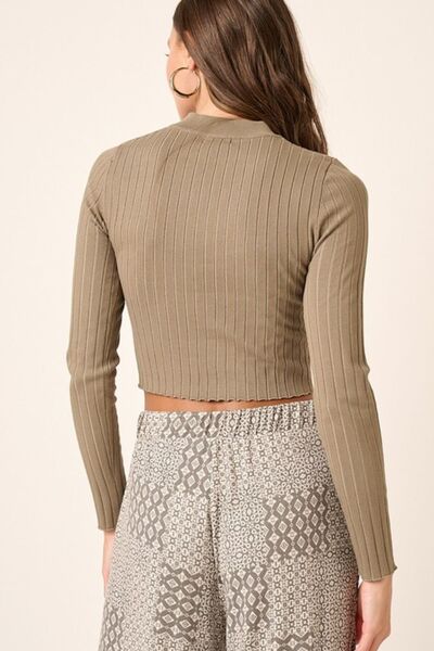 The Mock Neck Long Sleeve Crop Knit Top is a trendy and versatile piece for your wardrobe. The mock neck adds a touch of sophistication, while the cropped length offers a modern and stylish silhouette. Perfect for pairing with high-waisted bottoms, this knit top is a chic choice for both casual and dressy outfits. Its long sleeves provide added warmth and style, making it a versatile and fashionable addition to your closet.