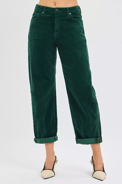 The high-rise crop barrel corduroy pants offer a stylish and retro-inspired addition to your wardrobe. The barrel cut provides a unique and flattering silhouette that is both modern and timeless. Made from corduroy fabric, these pants offer a soft and textured feel, perfect for colder seasons. The high-rise waist elongates the legs and creates a streamlined look. Pair these pants with boots and a sweater for a cozy and chic outfit that channels vintage vibes with a contemporary twist.