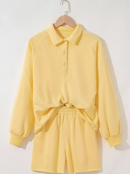 Button Collar Drop Shoulder Top and Shorts 2pcs Set