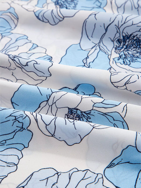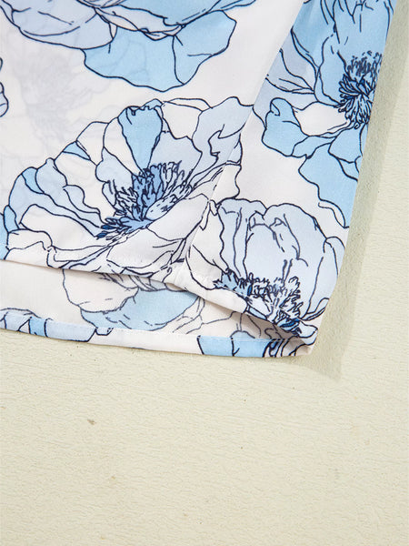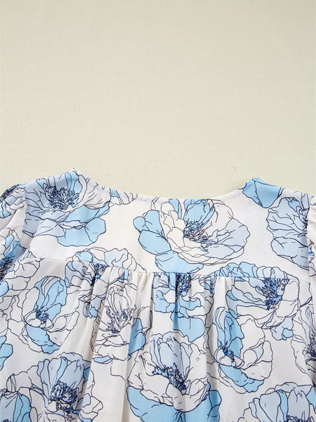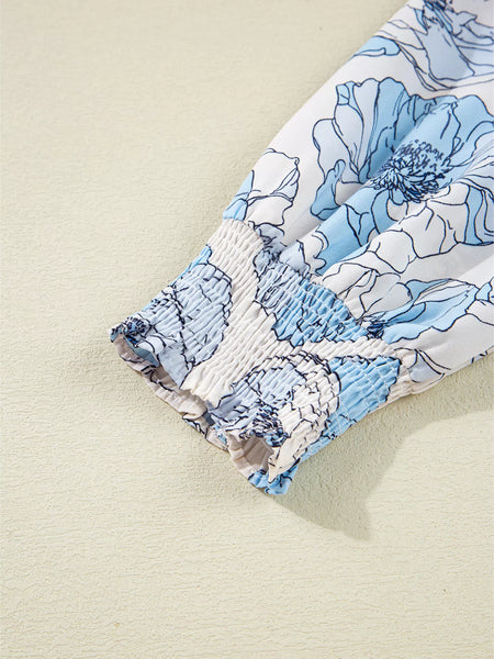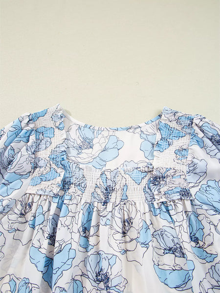 Floral Print Frilly Smocked Square Neck Long Sleeve Blouse