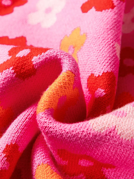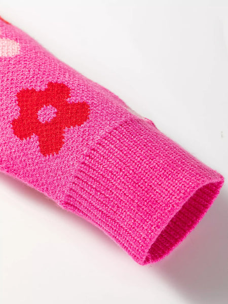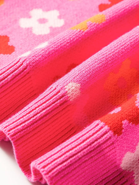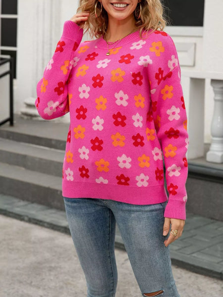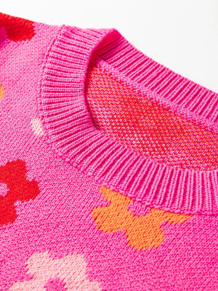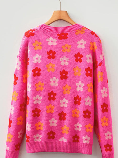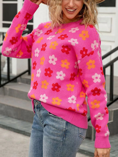 Flower Ribbed Trimmed Drop Shoulder Sweater
