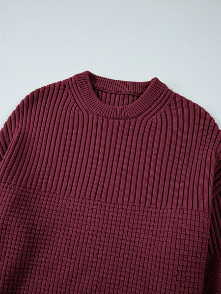 Solid Color Mixed Textured Knitted Crew Neck Sweater